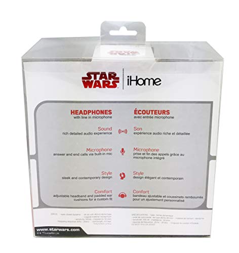 EKids Star Wars - Cuffie con microfono in linea, per bambini, colore: Nero e Rosso