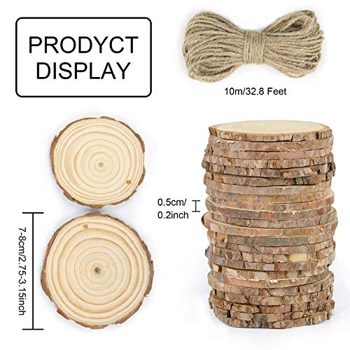 EKKONG Dischi Legno, 30 Pezzi Fette di Legno Diametro 7-8cm Legno da Decorare Naturale Pirografo, Intagliare, Disegnare e Decorazione di Matrimonio, Ornamento di Natalizi con 10m Corda Iuta
