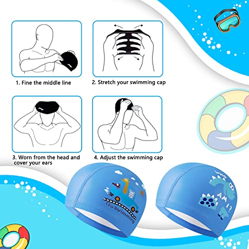 Buona elasticità: La cuffia da nuoto impermeabile dei nostri bambini è addensata e antiscivolo, il materiale in silicone è facile da allungare, non troppo stretto o troppo largo, non facile da sfilare e più comodo da indossare. Solo un semplice tratto, puoi goderti il divertimento di nuotare quando lo indossi.