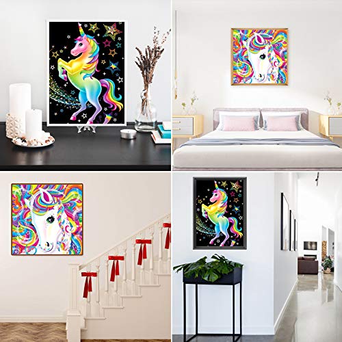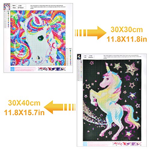 EKKONG 2 Pezzi 5D Diamond Painting Kit Completo, Pittura Diamante Fai Da TePrincipiante Artigianato per la Decorazione Della Parete di Casa (Cavalli arcobaleno + Unicorni, 30 * 30cm+40 * 30cm)