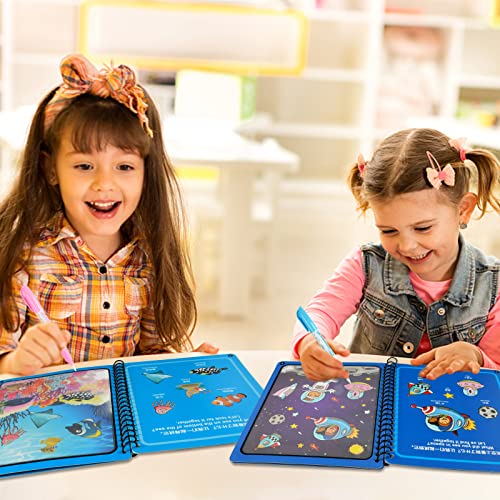 Water Magic Book: Questo libro da colorare ad acqua include 4 libri di doodle acquatico con temi diversi: mondo sottomarino, mondo dei dinosauri, fauna selvatica e mondo spaziale, 4 penne magiche riutilizzabili. Divertiti per i tuoi bambini.