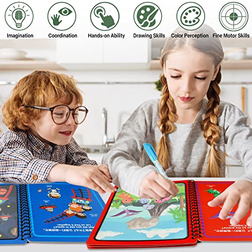 Regalo ideale per i bambini: Questi libri da colorare in acqua possono aiutare i bambini a migliorare le loro capacità motorie, abilità di disegno, discriminazione visiva e sviluppare la loro immaginazione e creatività, rendendoli un regalo ideale per l'educazione precoce. Perfetto per regali di compleanno, regali per bambini e regali di Natale.