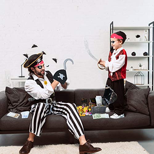 EKKONG Pirate Treasure Caccia al Tesoro Forniture per Feste di Compleanno per Bambini con Monete, telescopi, Bende per Gli Occhi, Bussola, Pietre preziose e Orecchini (Grande)
