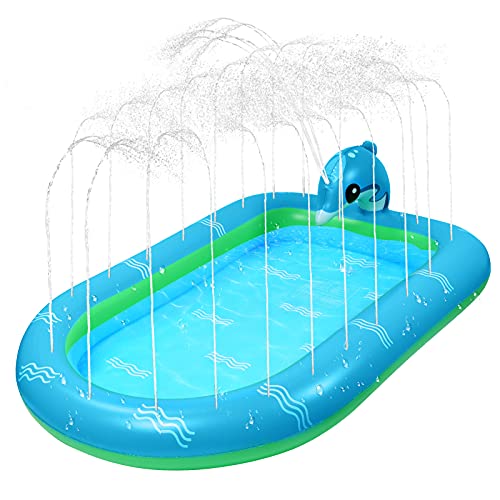 EKKONG Tappetino Gioco d'Acqua per Bambini, 170cm Splash Play Mat, Tappeto Gioco d'Acqua da Giardino, Giochi Giardino per Esterno Regali Compleanno Giocattoli, Bambini (Delfino)