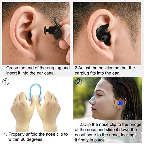 EKKONG 3 Paia di Tappi Auricolari in Silicone,Con 3 clip Per il Naso,Tappi Per le Orecchie Riutilizzabili Utilizzato per il Nuoto, il surf, Lo Snorkeling e Altri Sport Acquatici (nero, bianco, blu)