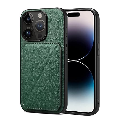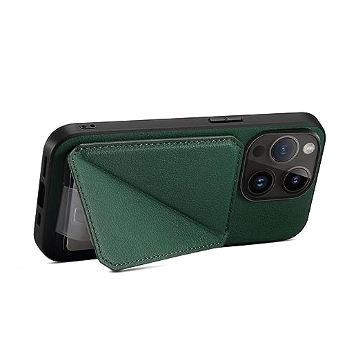 EKSED Custodia per iPhone 15/15 Plus/15 Pro/15 PRO Max, Custodia in Vera Pelle, con Cavalletto per Slot per Schede, Cover Posteriore Antiurto E AntiGraffio, 15 PRO Max,Green