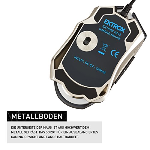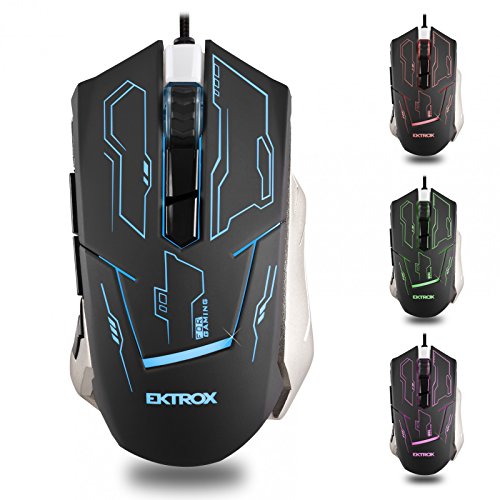 EKTROX EX15 Mouse ottico da Gaming Mouse, 9 tasti, 4000 dpi, cavo incluso
