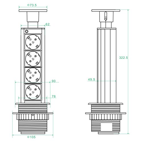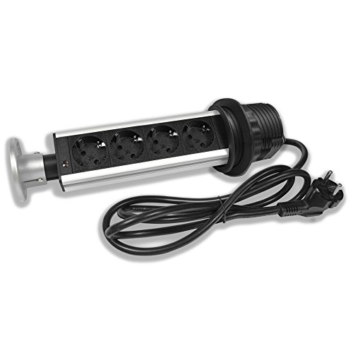 Elbe EL1804S, Presa da tavolo a scomparsa, Multipresa con 4 Prese Tedesche, Spina Tedesca, copertura cromata, cavo di 1.5 m