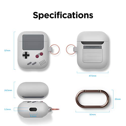 Elago Cover AW5 compatibile con Apple AirPods 1 e compatibile con Apple AirPods 2, design per console di gioco, custodia con moschettone (grigio)