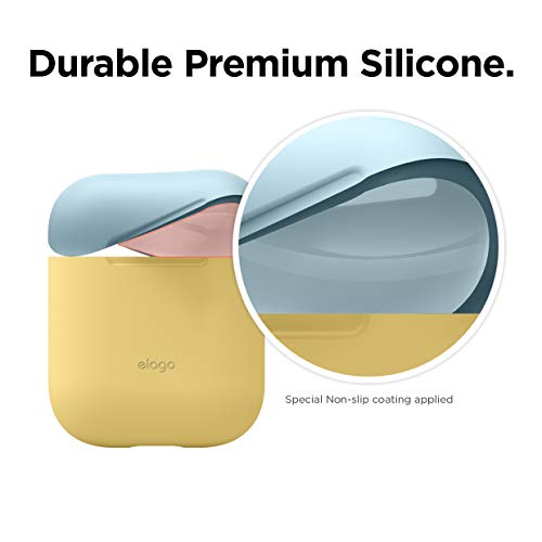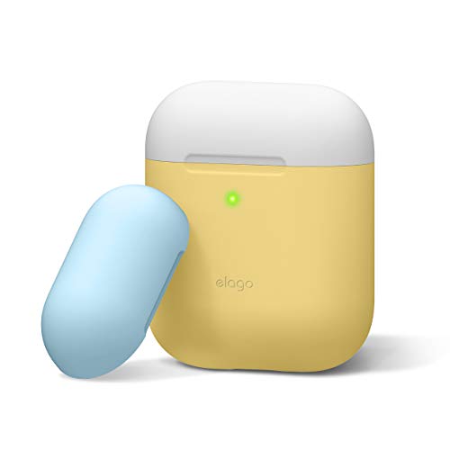 Elago - Cover in silicone compatibile con custodia di ricarica Apple AirPods (LED visibile), 2 tappi e 1 corpo inclusi, colore corpo giallo, colore tappi blu pastello e bianco