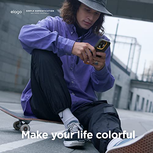 Elago Custodia Glide compatibile con iPhone 14 Pro Cover Case (6.1"), Design Semplice e Unico, Protettiva in TPU, Antiurto, Parti Miste e Abbinabili, Protezione Fotocamera (Grigio Scuro/Giallo)