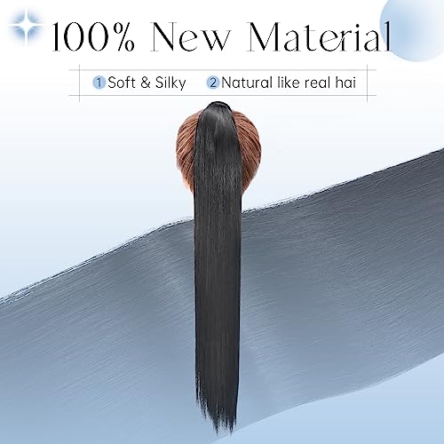 Elailite 26" Coda Capelli Extension di Cavallo Clip in Hair Lisci Parrucchino Ponytail Wrap Around Estensioni 66cm-135g, 1# Nero