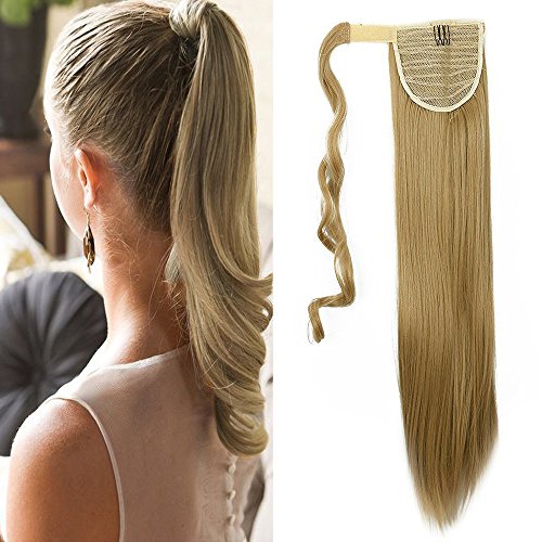 Elailite 23" 58cm Coda Capelli Extension Cavallo Clip in Hair Ponytail Capelli Lisci Parrucchino Wrap Around Estensioni 120g, Biondo Cenere