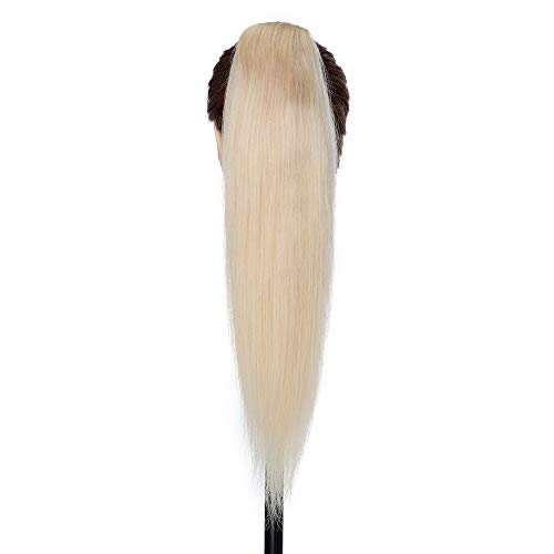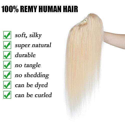 Elailite Coda Capelli Extension Veri Clip Effetto Realistico Ponytail Pinza Remy Human Hair Lisci per Coda di Cavallo Finta 55cm 120g 60# Biondo Platino