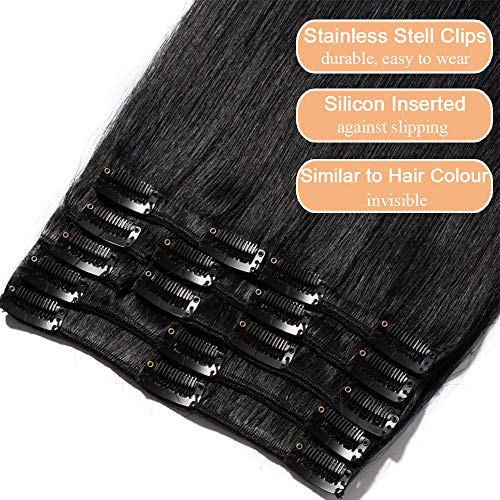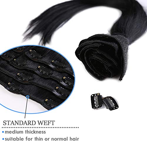 Elailite Clip in Capelli Veri Extension Grade 8A Remy Human Hair Naturali Set da 8 Ciocche Allungamento Quickclip [Standard Weft, 40cm (90 gr)] 1# Nero Scuro