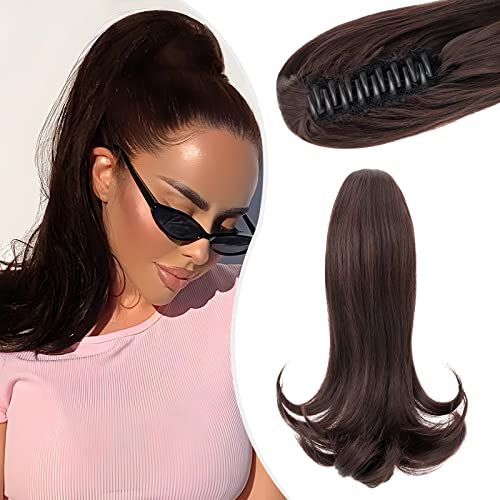 Elailite Coda di Cavallo Extension con Pinza Quickclip Ponytail Capelli Ondulati verso Fuori (30cm/100g) # Marrone Cioccolato