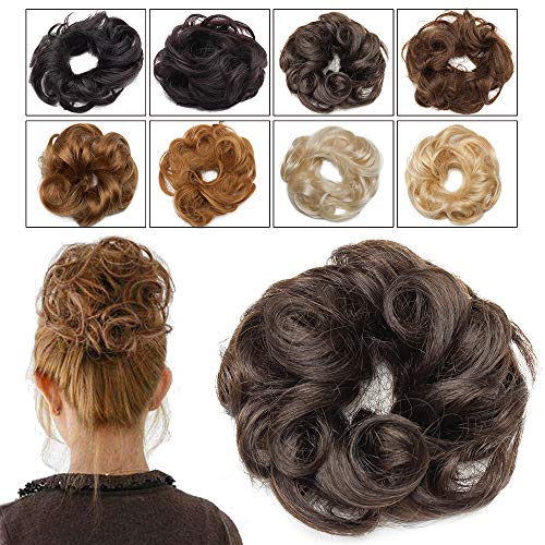 Elailite Chignon Capelli Veri Elastico Extension 100% Remy Human Hair Ricci Fermacoda senza Clip Hair Bun Finto Scrunchies Toupet 23g #2 Marrone Scuro