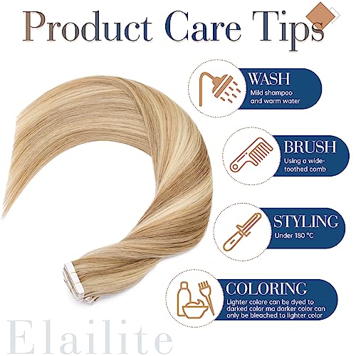 Elailite Extension Adesive Capelli Veri Biadesivo 20 Fasce Biadesive Remy Human Hair Umani Tape Extensions Volumizzante 60g/Set, 30cm Balayage #Marrone Dorato mix Biondo Chiarissimo