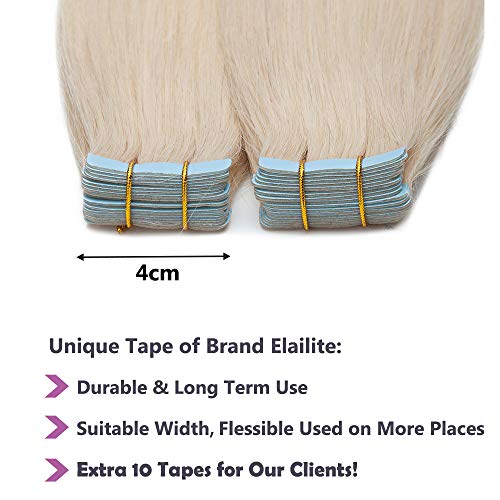 Elailite Extension Adesive Capelli Veri Biadesivo Volumizzante 3g/Ciocca * 20 Ciocche Tape Biadesive Remy Human Hair senza Clip 50cm 60g #70 Bianco Chiarissimo