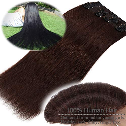 Elailite Extension Clip Capelli Veri 25cm-60cm #4 Marrone Cioccolato - 8 Ciocche Remy Human Hair Umani Double Weft Extensions Voluminose - 35cm 120g