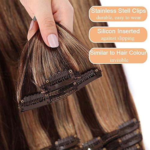 Elailite Extension Clip Capelli Veri Balayage Set da 8 Ciocche Voluminose Double Weft Remy Human Hair Umani Lisci 25cm 110g #4/27 Castano Cioccolato mix Biondo Scuro