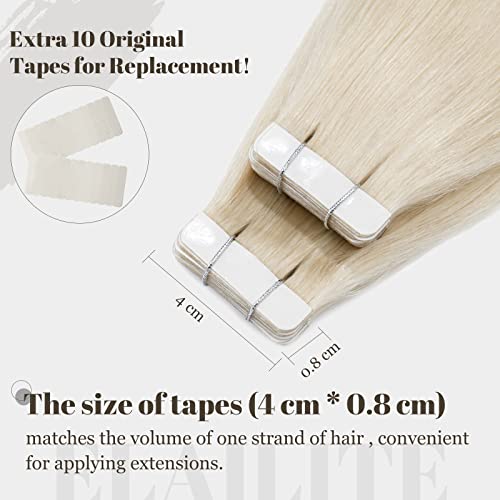 Elailite Extension Capelli Veri Biadesivo V3.0 Punte Piene 50g 20 Fasce Biadesive Tape Extensions Adesive Virgin Human Hair con 10 Nastro Ricambio 45cm # Biondo Chiaro