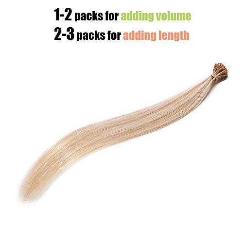 Elailite Extension Capelli Veri Cheratina 100 Ciocche 100% Remy Human Hair Indiani Keratina I Tip 45cm 50g - 18#/613# Beige Sabbia Biondo/Bleach Biondo