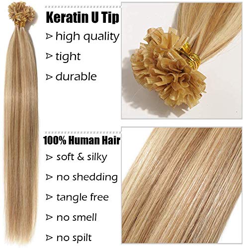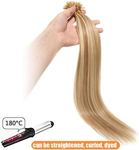 Elailite Extension Capelli Veri Cheratina 100 Ciocche 50g senza Clip U Tip Invisibile Remy Human Hair Naturali Indiani 55cm #12/#613 Marrone Chiaro/Biondo Chiarissimo