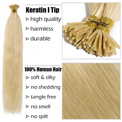 Elailite Extension Capelli Veri Cheratina 1 Grammo 50 Ciocche I Tip Keratina Indiani 100% Remy Human Hair Umani 50g/Set (45cm, 613 Bleach Blonde)