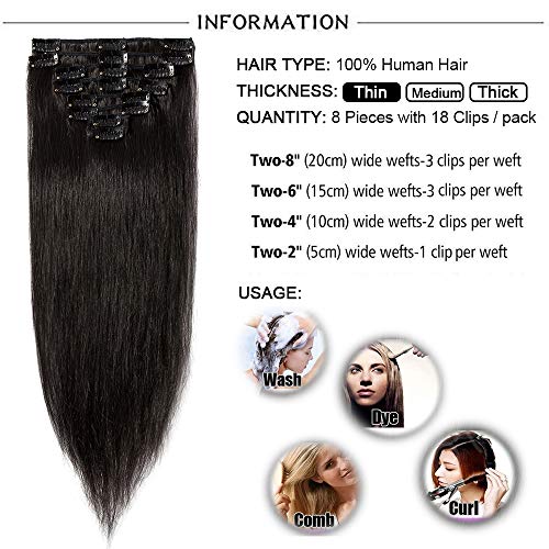 Elailite Extension Per Capelli Umani Clip 55Cm (75 Gr) Set Di 8 Ciocche Capelli Umani Remy Estensioni Dei Capelli Naturali Quickclip 1B# Nero Naturale