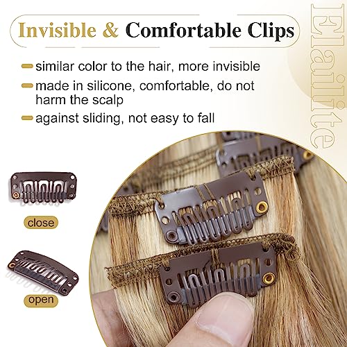Elailite Extension Capelli Veri Clip Set da 8 Ciocche Singole Grade 8A Remy Human Hair Naturali 33.02cm (80g) # Biondo Sabbia mix Chiaro