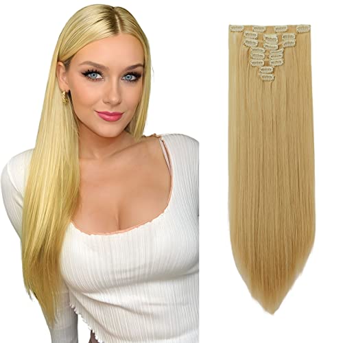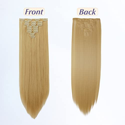 Elailite Extension Capelli Clip Lisci 8 Fasce Separate Full Head Fibre Hair Sintetici Finti Calore Resisitente Posticci Donna 58cm 140g # Sabbia Scura/Biondo Chiarissimo