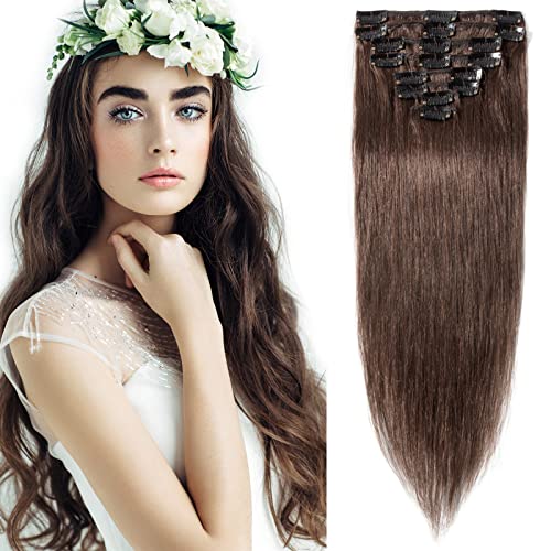 Elailite Extension Clip Capelli Veri Naturali Qualita Migliorata Super Invisibile - 8 Fasce per Capelli Lisci 100% Remy Human Hair 30cm (55g) #4 Marrone Cioccolato