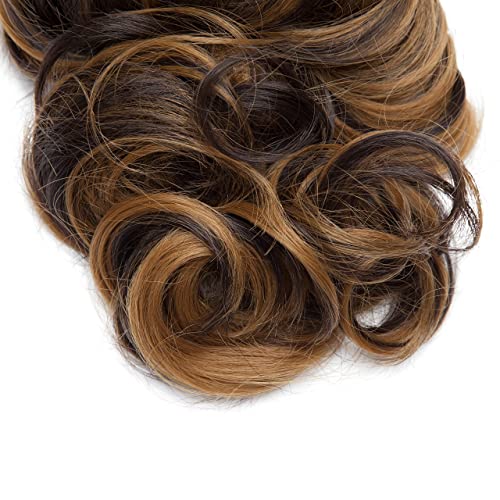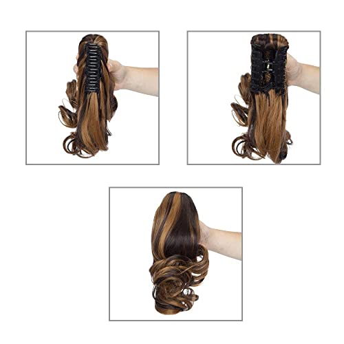 Elailite Extension Coda Capelli Ricci Mossi Code di Cavallo con Pinza Hair Extensions Sintetiche Ponytail Fascia Unica 30cm, Castano Scuro e Biondo Rossiccio