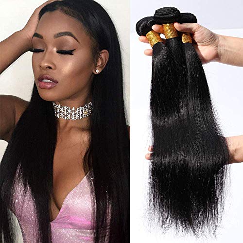 Elailite Extension Capelli Veri Tessitura 300g/pack 3 ciocche Extensions Matassa Virgin Human Hair Umani Brasiliani 45cm 45cm 45cm 1B# Nero Naturale