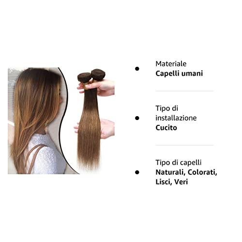 Elailite Extension Capelli Veri Tessitura Una Ciocca Matassa Shatush 100g Unprocessed Virgin Human Hair Lisci Naturali Umani 50cm #4 Marrone Cioccolato/#30 Castano Ramato Chiaro