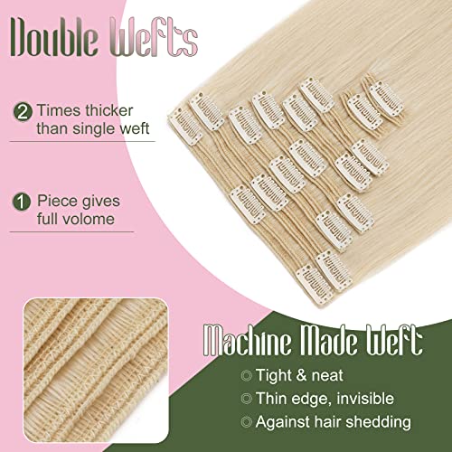 Elailite Extension Clip Capelli Veri Voluminosa Double Weft 8 Ciocche da Set 100% Remy Human Hair Extensions Clips Invisibili 50cm 150g #70 Bianco Chiaro