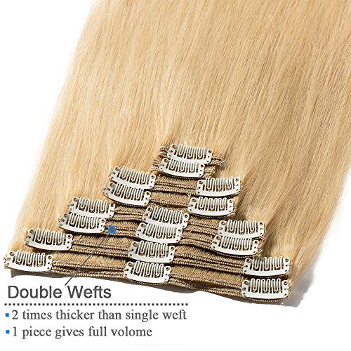 Elailite Extension Clip Capelli Veri Voluminose #24 Biondo Chiaro - 100% Remy Human Hair 8 Ciocche Extesnsions Folte Double Weft Capelli Lisci Naturali 25cm 110g