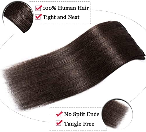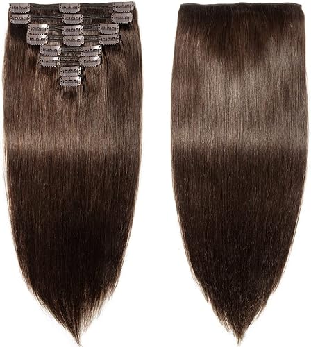 Elailite Extension Capelli Veri Clip Volumizzante - 25cm 110g - 8 Fasce Folte Double Weft Full Head 100% Remy Human Hair Lisci # Castano Intenso
