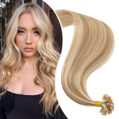 Elailite Extension Cheratina Capelli Veri 1 Grammo #12/#613 Marrone Chiaro/Bleach blonde, 50 Ciocche Remy Human Hair Indiani 50cm 50g