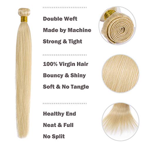 Elailite Extension Tessitura Capelli Veri Matasse Bionde Human Hair Brasiliani Naturali Lisci Una Ciocca 100g - Biondo Chiarissimo (25cm)