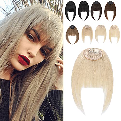 Elailite Frangia Clip Capelli Veri Extension Frangetta 100% Remy Human Hair Puliti Stile Francese 7cm*15.24cm con Tempie 29.21cm (14g # Biondo Platino)