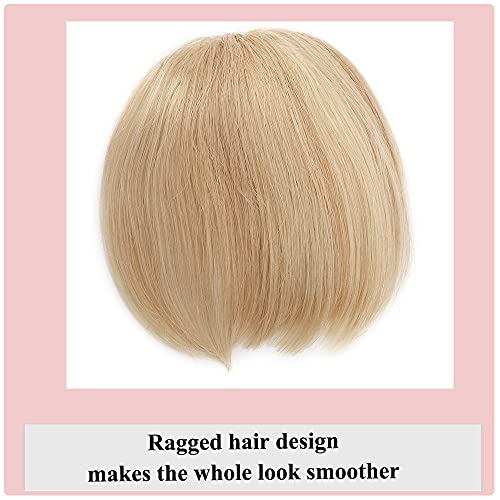 Elailite Frangia Clip Capelli Veri Extension Frangetta Irregolare Effetto Naturale 100% Remy Human Hair Bangs Biondo Sabbia/Chiarissimo