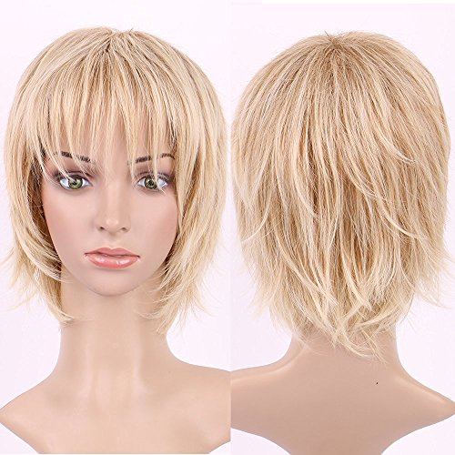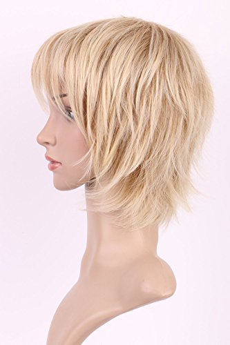 Elailite Parrucca Corta Bionda da Donna Uomo alla Moda Stile Europeo Highlight Resistente al Calore per Vita Quotidiana Party Carnevale Festa
