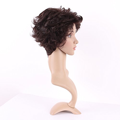 Elailite Parrucca Marrone Corta Donna Uomo Riccia Capelli Sintetici Fashion Wig Stile Europeo Parrucche per Vita Quotidiana Party Carnevale Festa Halloween