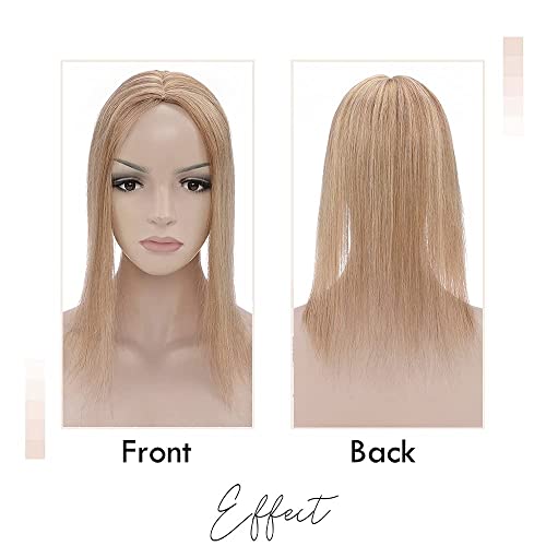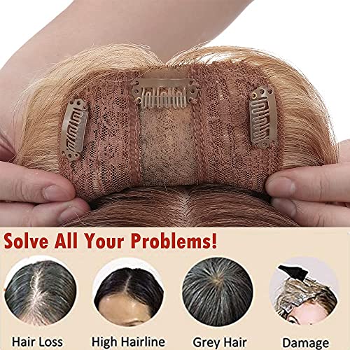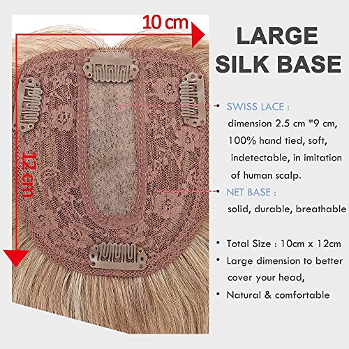 Elailite Protesi Donna Clip Hair Topper Capelli Veri Extension Balayage #12P613 Marrone Dorato/Biondo Chiarissimo - Human Hair Indiani 10cm*12cm con Silk Lace Toupet Toupee 40cm 50g