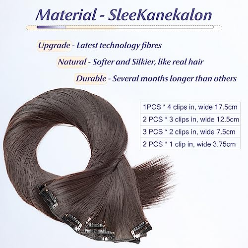 Elailite SleeKanekalon Extension Capelli Clip 8 Fasce Singole Posticci Donna Fibre Hair Lisci Lunghi 65cm 140g Full Head - Castano Scuro