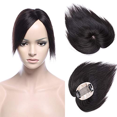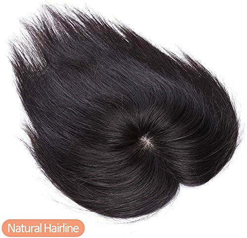 Elailite Lace Hair Topper Donna Clip Capelli Veri Extension 100% Remy Human Hair Balayage 25cm-20g, Silk Top 6cm*9cm, Toupet Toupee #1 Jet Nero
