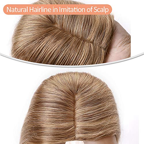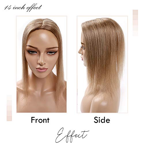 Elailite Hair Topper Donna Capelli Veri Clip Extension Human Hair Indiani 10cm*12cm con Silk Lace Protesi Toupet Toupee 40cm Alta Densita 50g #27 Biondo Scuro