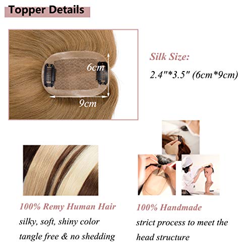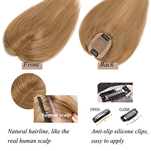 Elailite Hair Topper Donna Capelli Veri Clip Extension Remy Human Hair Silk Lace Super Realistico Protesi Toupet 15g Fascia Unica Toupee (15cm, 27# Biondo Scuro)